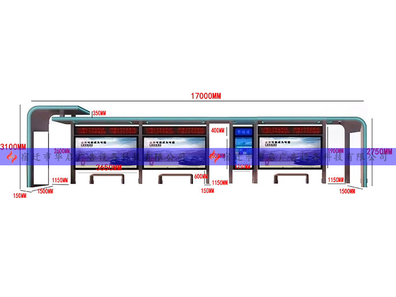 江西17米公交候車(chē)亭發(fā)貨實(shí)拍圖,此款公交候車(chē)亭整體材料使用鍍鋅板材料,3.6米的大視窗廣告畫(huà)面,公交候車(chē)亭