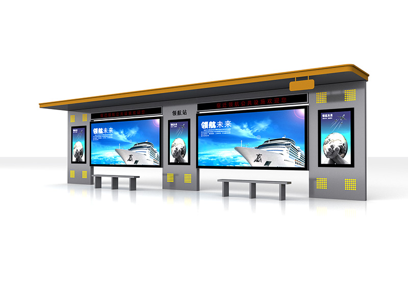 候車亭不僅帶有l(wèi)ed走字屏,頂棚上還安裝了led射燈,在黑的夜也十分的醒目;此外還設(shè)計(jì)有小細(xì)節(jié),候車亭整體為灰色,頂棚四周為黃色,正面還有發(fā)光黃色背板,黃色為警示顏色,所以就算候車亭的燈光不亮也不影響的它的“醒目”特色!