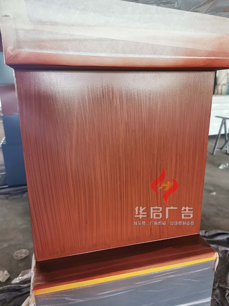 華啟公交站臺廠家定制景觀小品,鍍鋅板激光切割精準(zhǔn)下料,折彎焊接而成。外觀氟碳漆,套色木紋轉(zhuǎn)印。